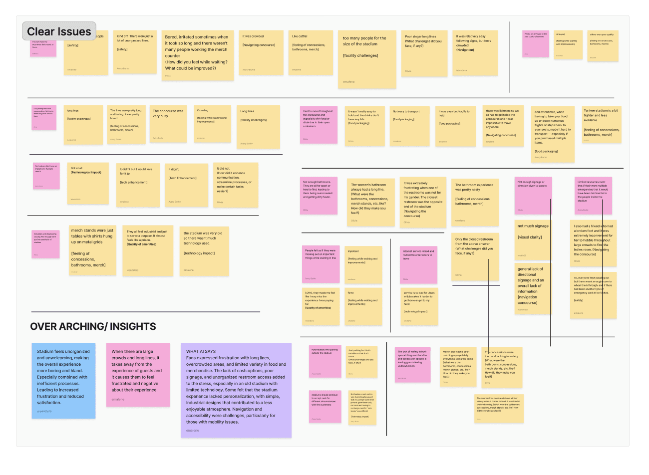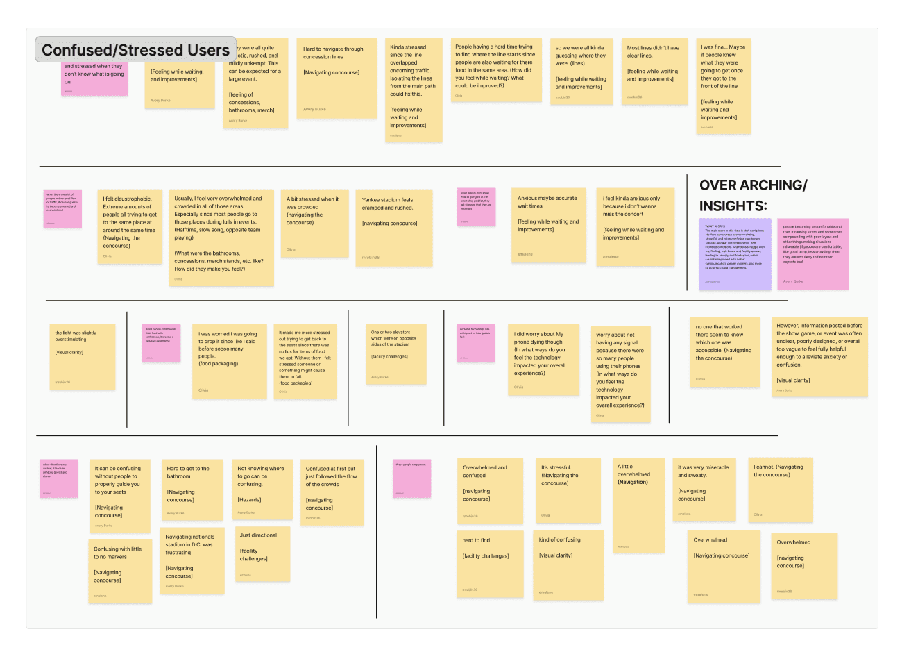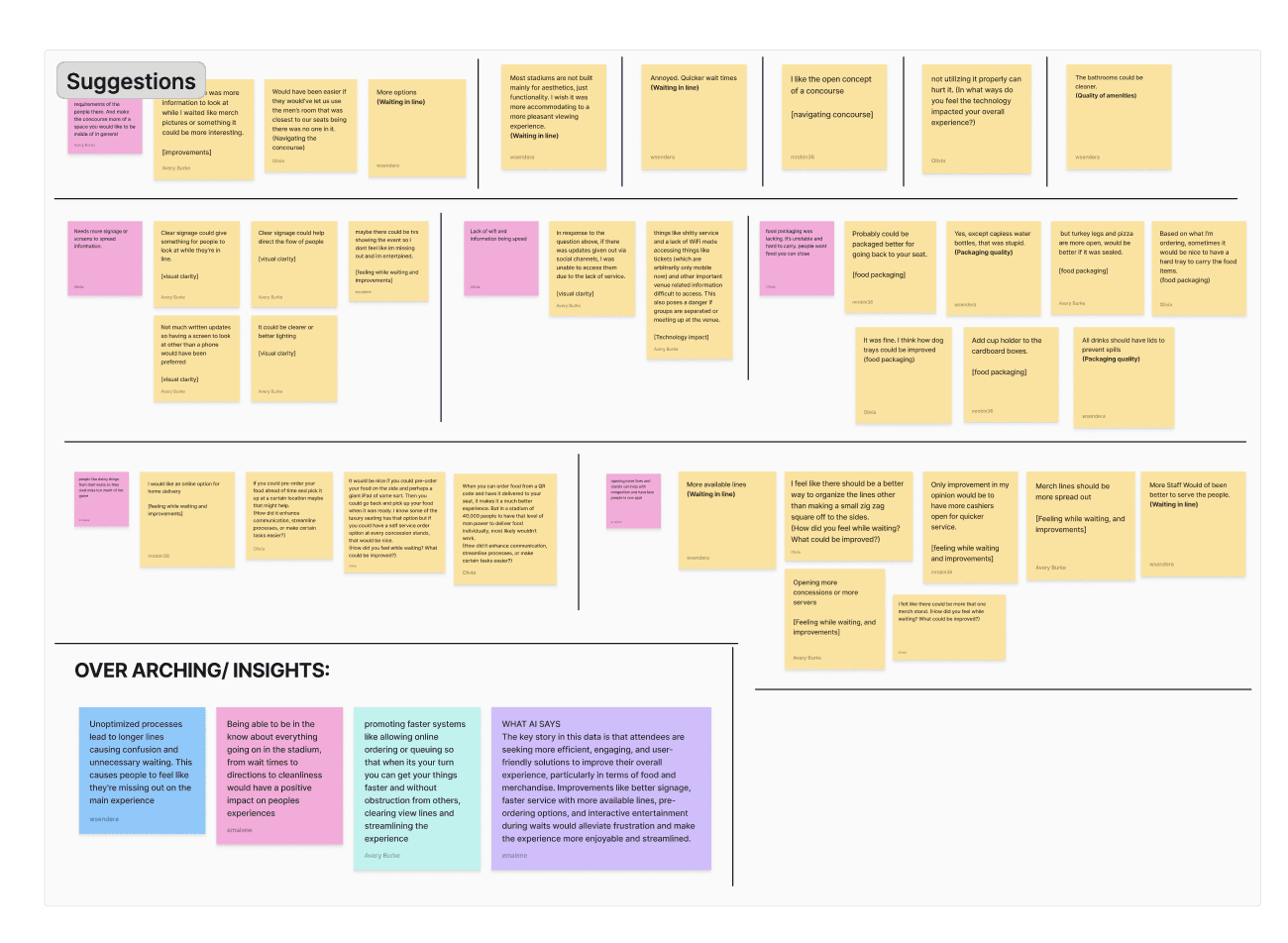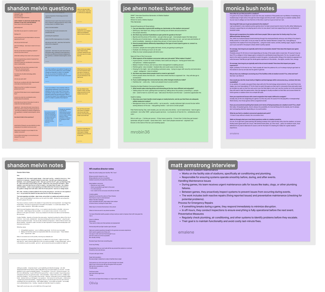My team and I decided to answer the question: “What would make the most ideal concourse experience while attending a stadium event?” We conducted one on one interviews and analysed survey responses as well as stadium reviews to see what could be improved upon.