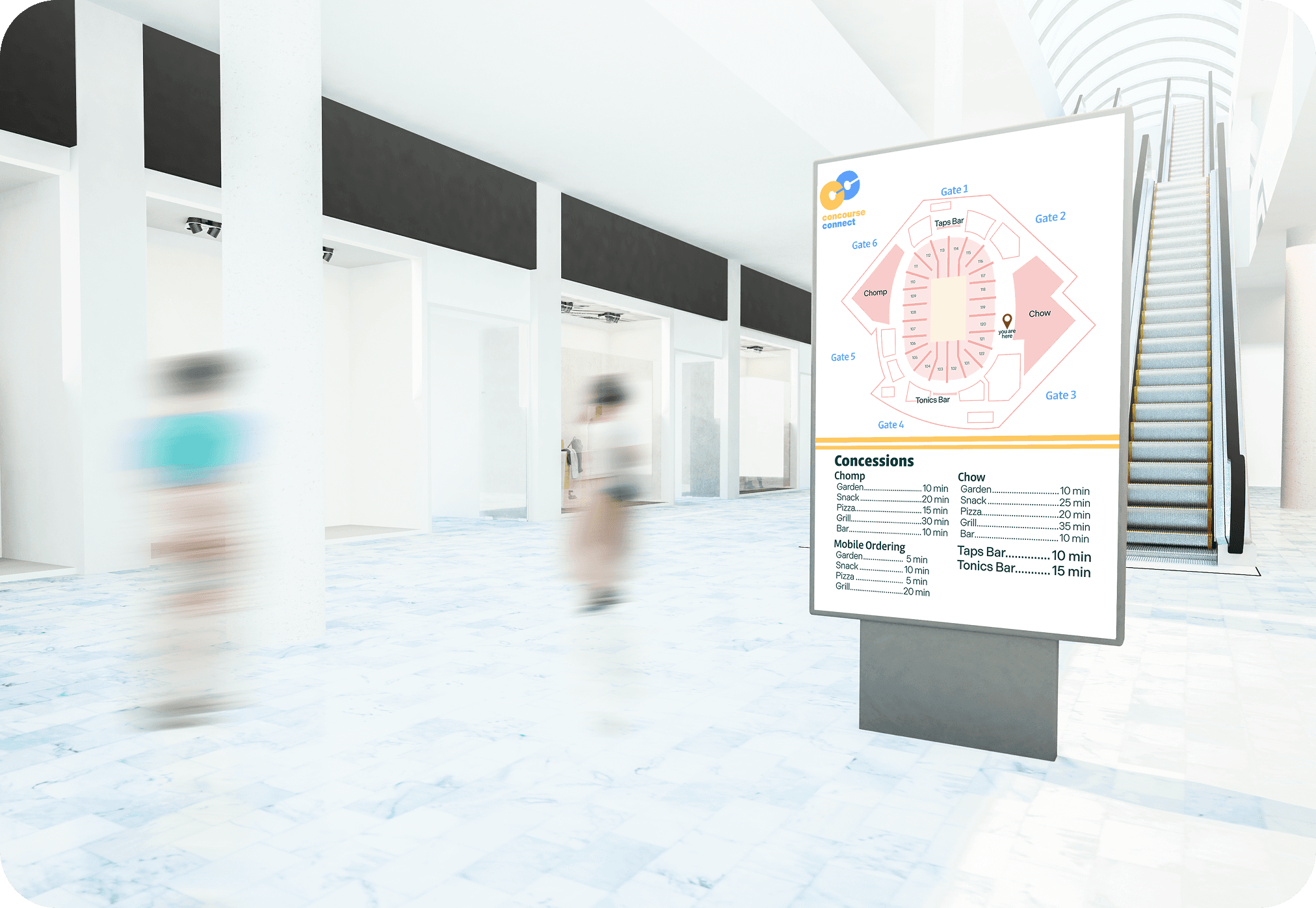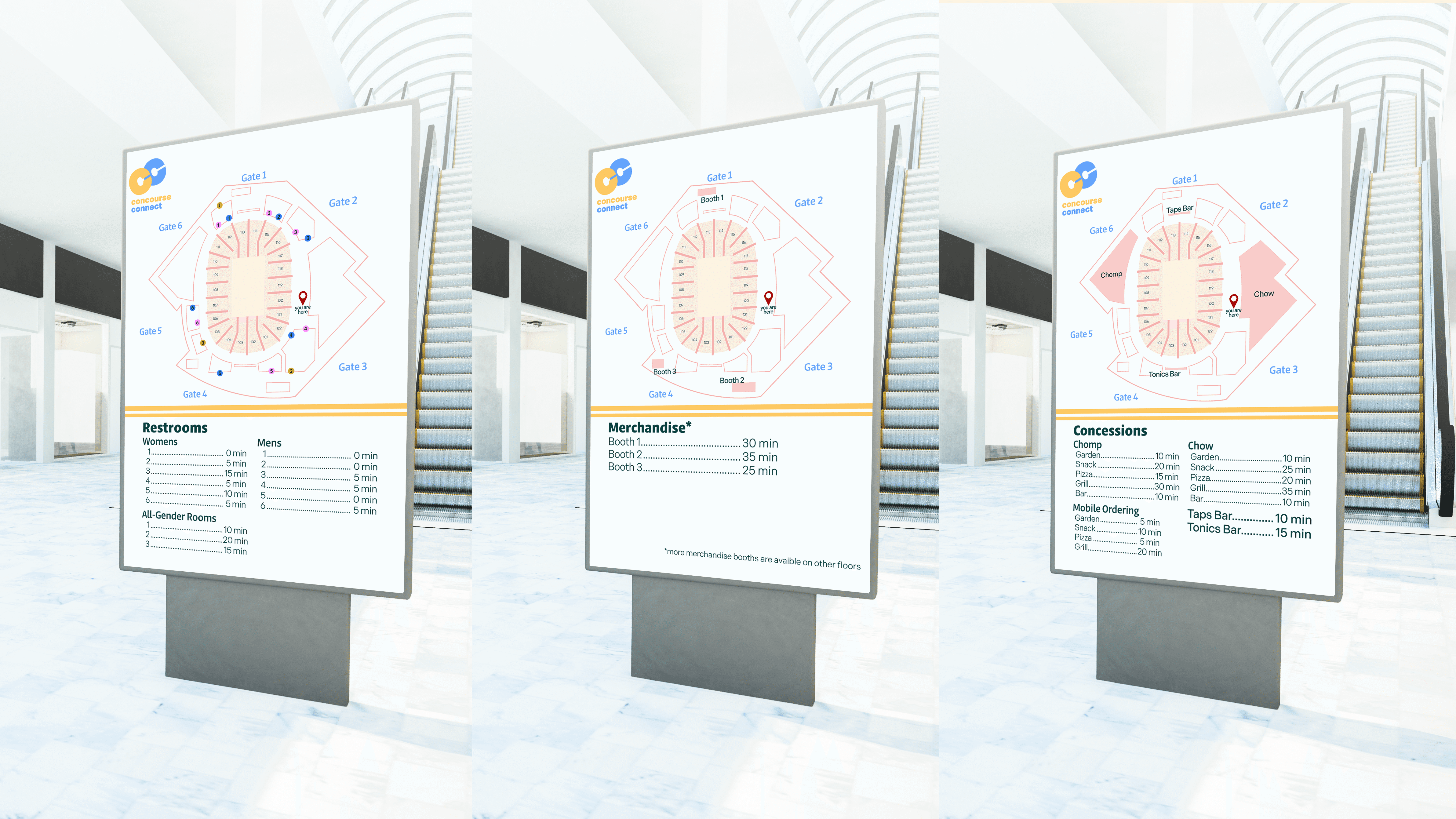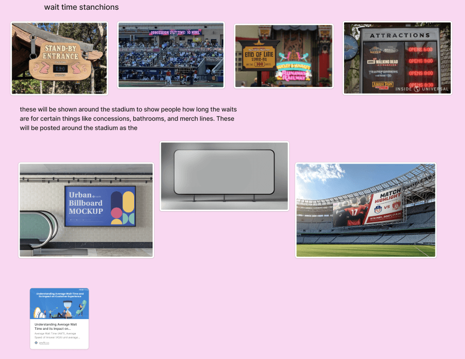 I focused on analyzing data related to wait times and wayfinding to identify the biggest pain points. Our goal was to design a seamless concourse experience that improved flow without taking guests out of the event. We aimed to create a universal system that any stadium could adapt.