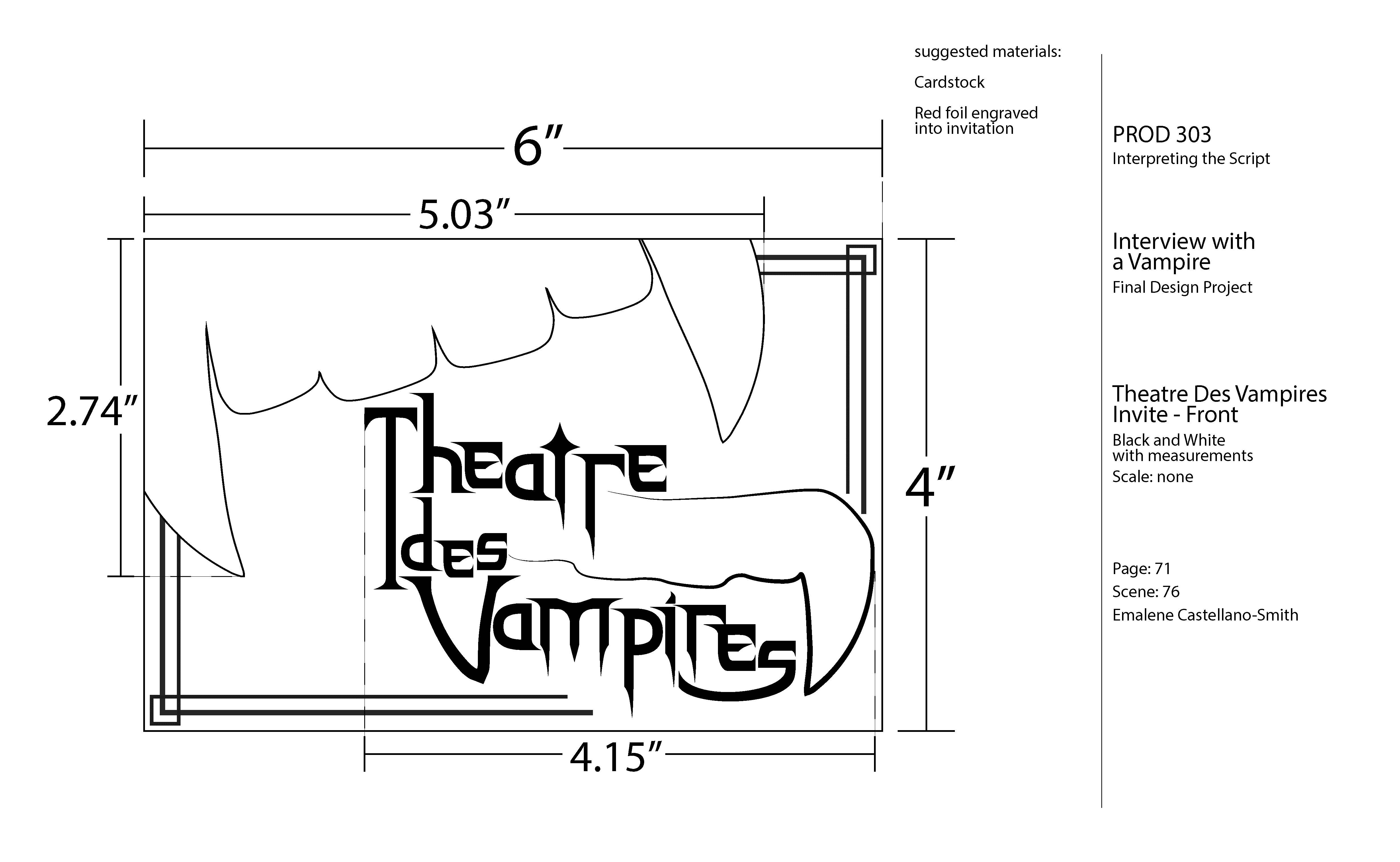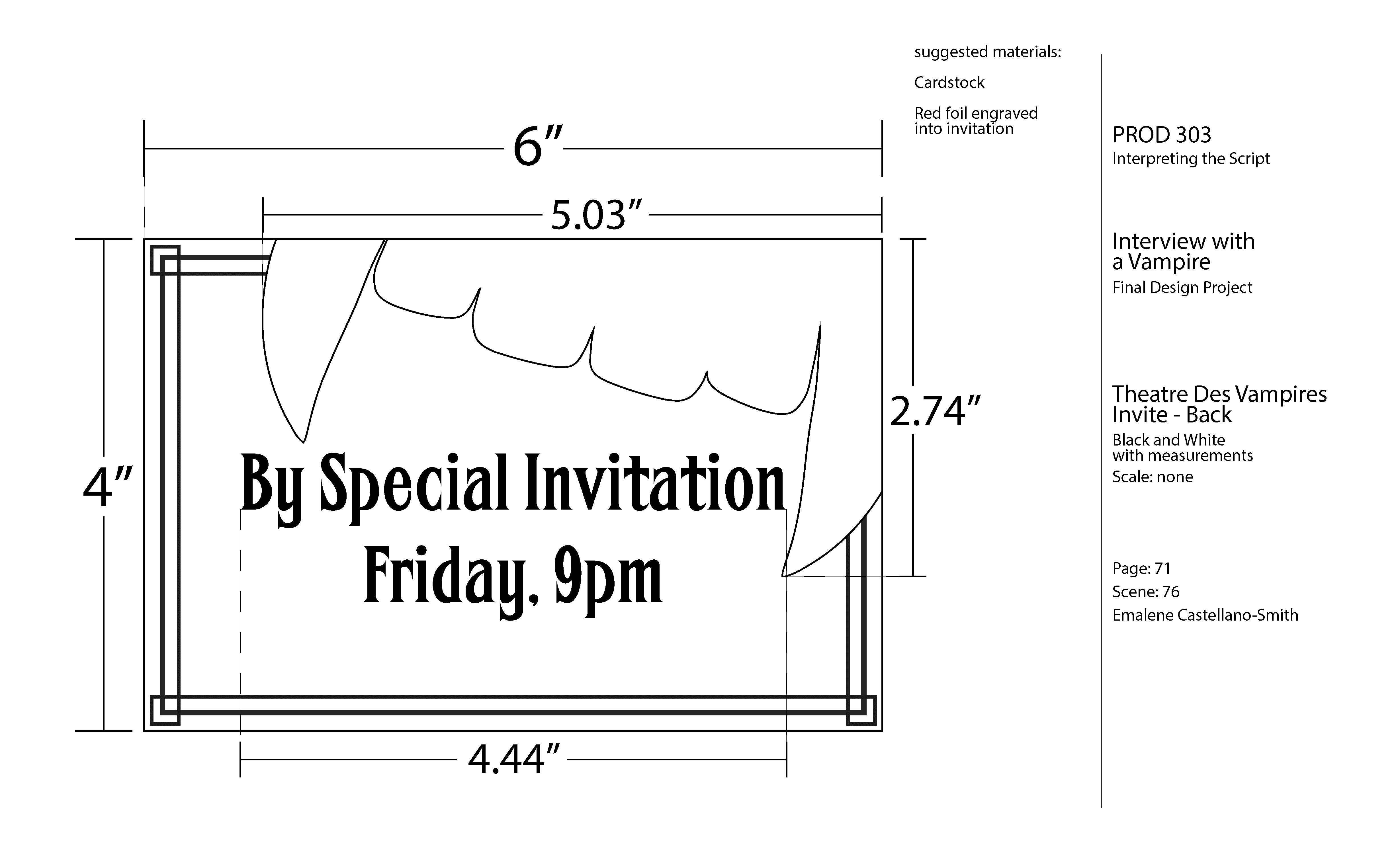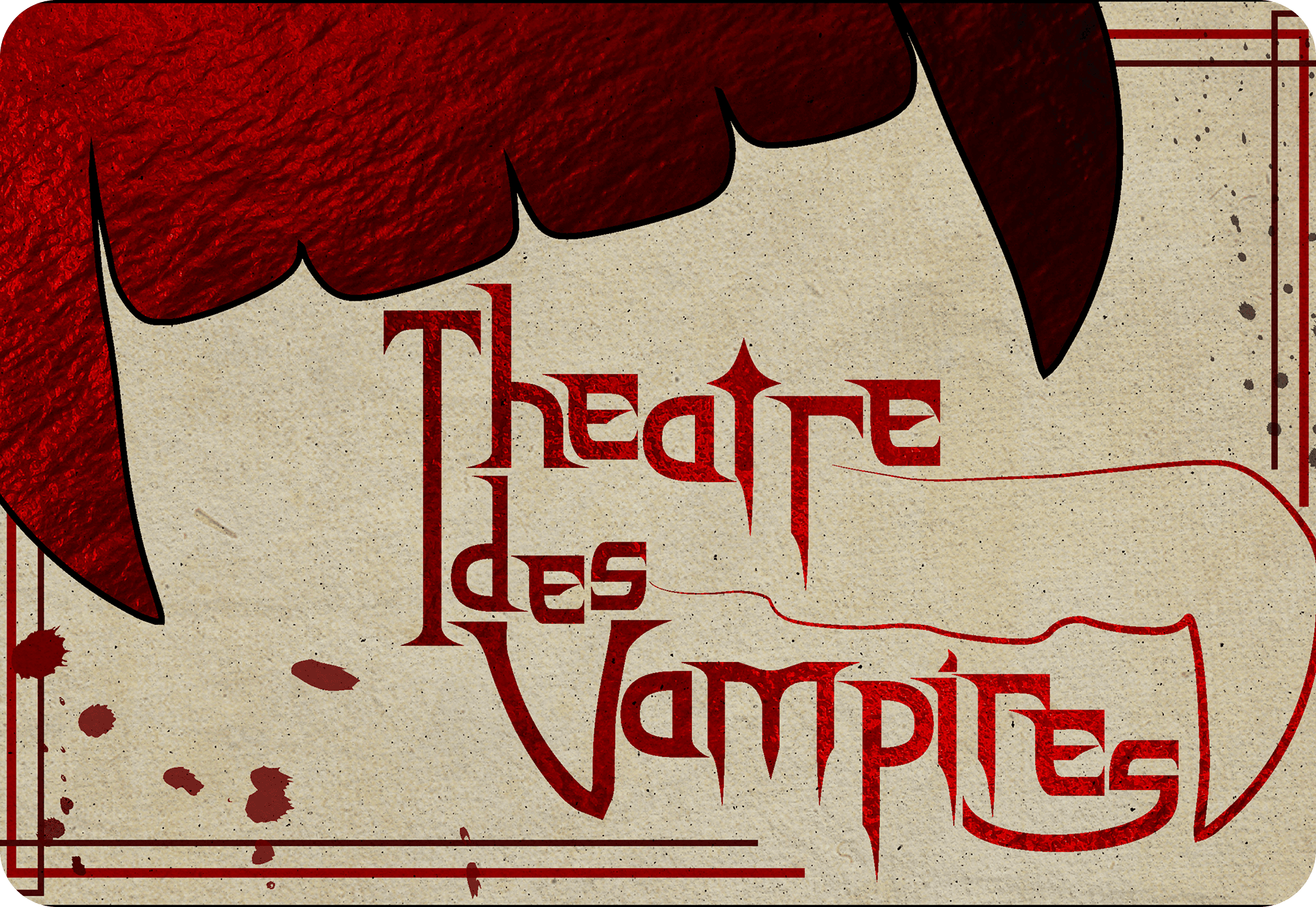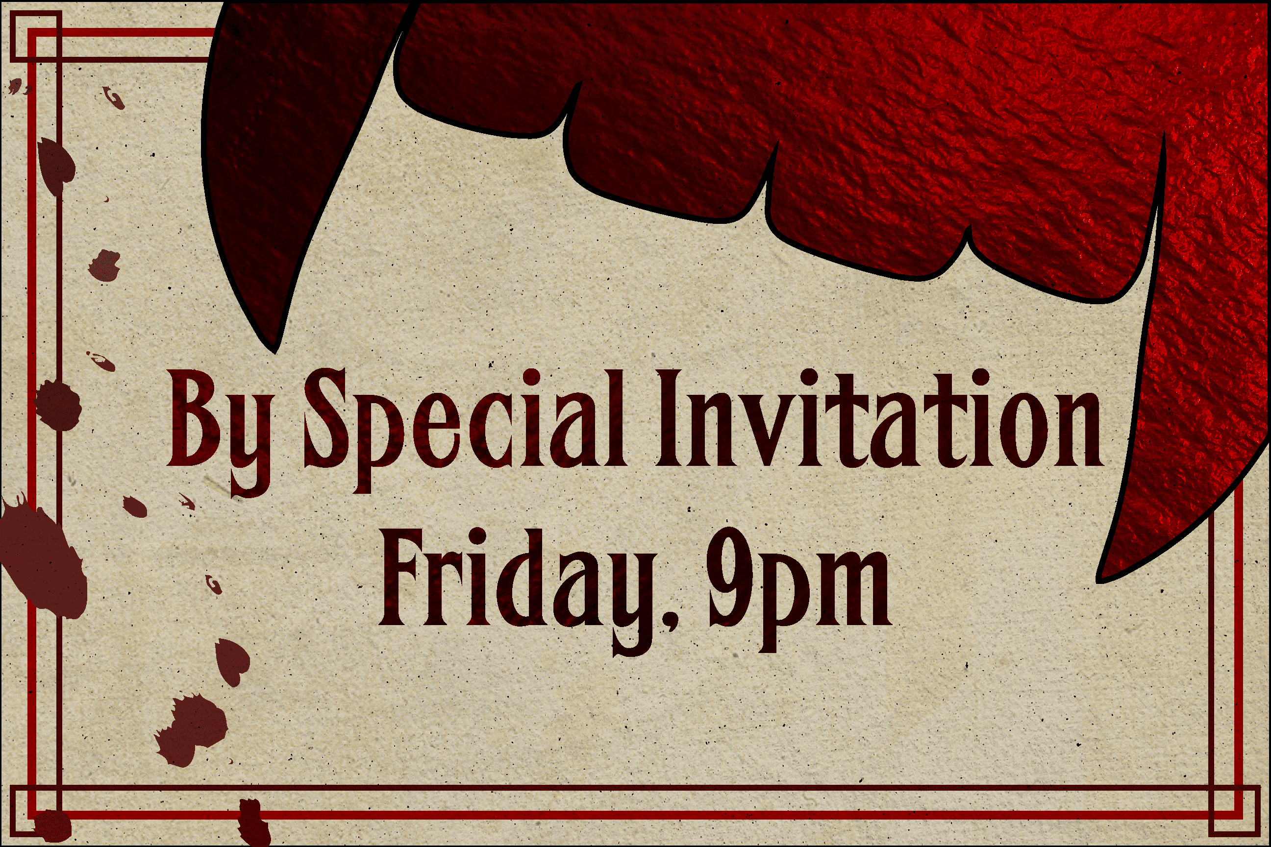 The invitations were designed to feel luxurious, featuring red foiling across the type and designs, with a die-cut top resembling vampire teeth. The poster remained simpler, reflecting the straightforward, eye-catching style of 19th-century French posters, while still conveying the eerie and dramatic atmosphere of Masque of the Red Death.